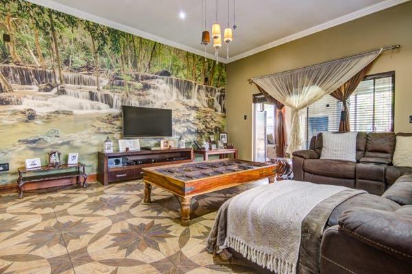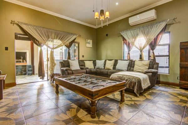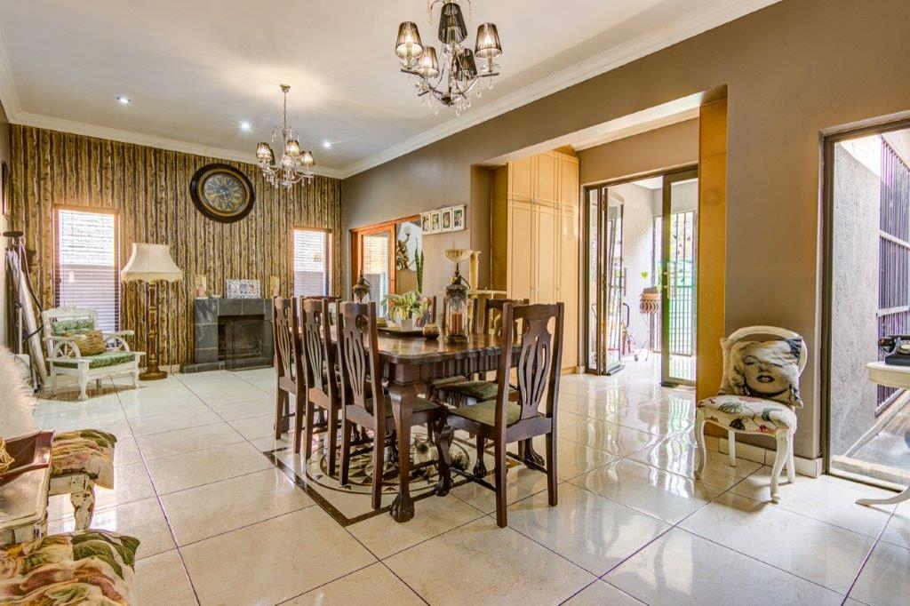 Large dining room with fireplace leading to sunken lounge and entertainment room with build in bar and braai for the entertainer. Outside covered patio overlooking the sparkling pool and inviting 20 seater boma area.