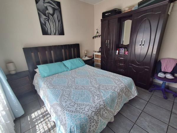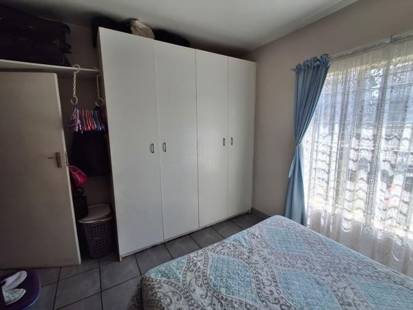 Two bedrooms both have lots of cupboards, bathroom has a shower in the bath, prepaid electricity and water, tiles right through and is move in and live. The complex is currently getting painted, has twenty-four-hour security, electric fencing, has a solar system, communal swimming pool and entertainment area. It is just one that you have to see!