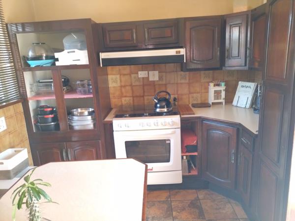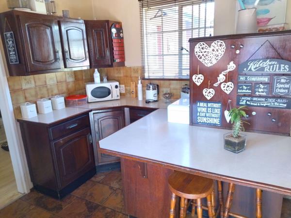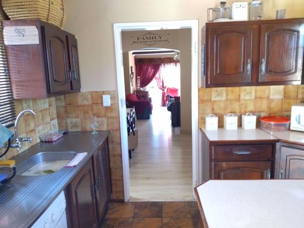Four Bedrooms with ample built-in cupboards, Two bathrooms, one of which are en-suite. Bar area leading out to outside Braai area.