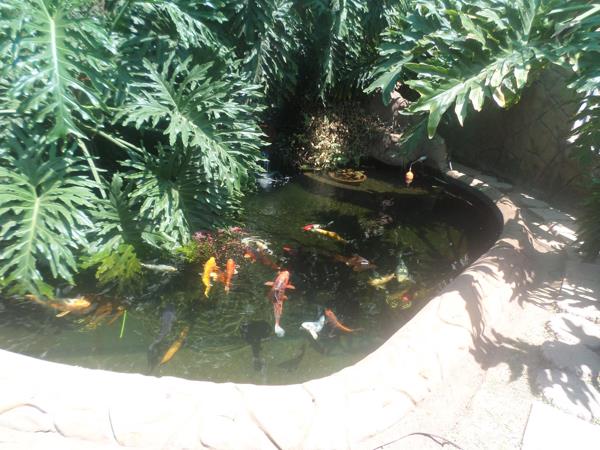 Fully functional koi pond with rock fountain feature