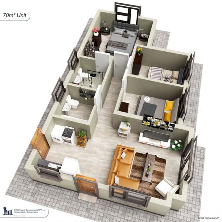 2 and 3 Beds with ENSUITE SHOWERS to Choose From..... FULLY WALLED with an Electrical Fenceeand ONLY 1 Entrance with a FUTURE SECURITY POST !!............ DOUBLE STOREY HOUSES also Available.