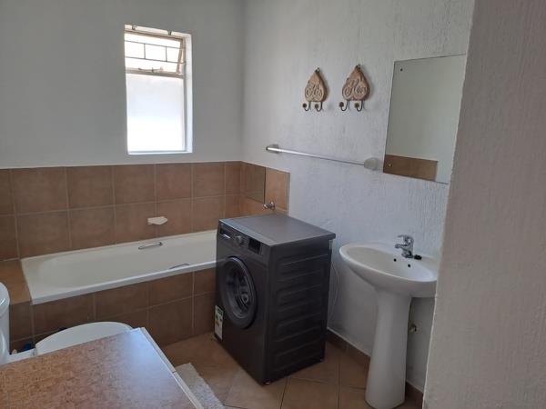 This exquisite 2-bedroom, 2-bathroom first-floor corner apartment is a sanctuary for couples and young professionals seeking the epitome of modern living. This complex is in a boomed-off area. The kitchen boasts granite counter tops and ample cupboard space and space for 1 undercounter appliance. There is a hob with undercounter oven. The spacious open-plan lounge seamlessly flows onto a charming balcony, perfect for enjoying morning coffee or evening sunsets. The entire apartment has tiled floors for easy cleaning. Electricity is prepaid.