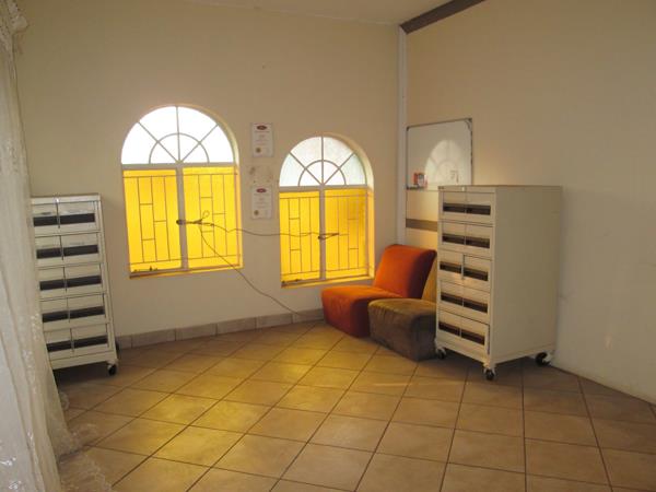 The third building which is upstairs is a three bedroom home, two with built-in cupboards, two modern bathrooms, open plan kitchen, lounge and dining room.