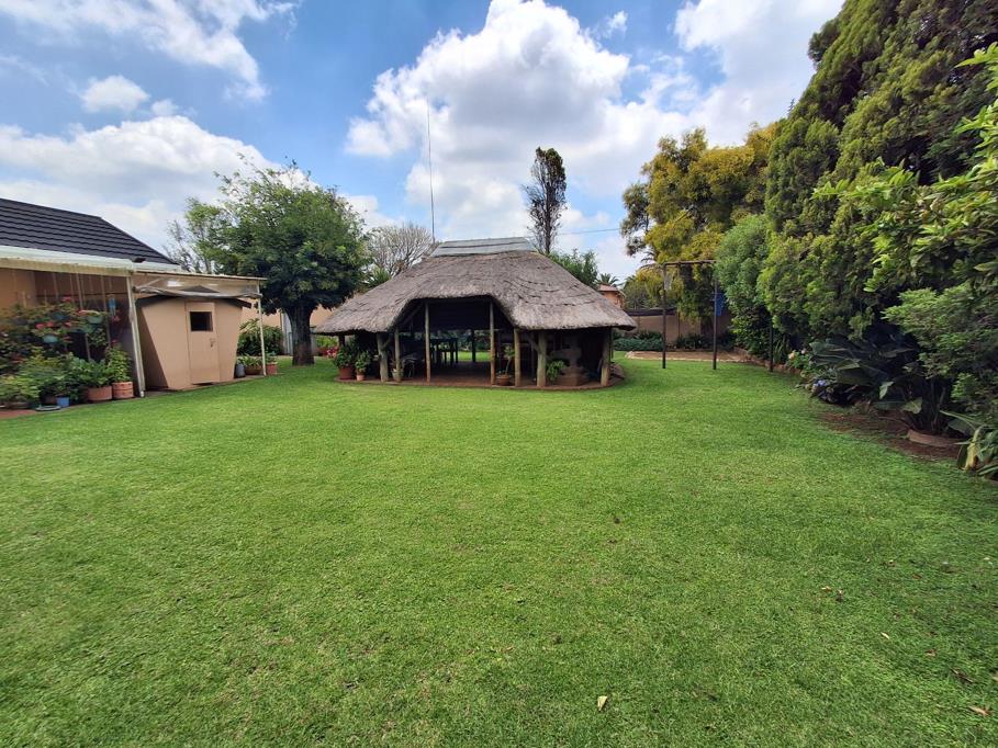 Double tandem garage, double tandem carports, paved parking space, two automated entrances, lovely, covered patio, big thatch lapa with built in bar and electricity, a sauna, koi pond, water storage units and outbuildings with a bathroom that can be converted into a bachelor flat. This home has everything you can want and more.