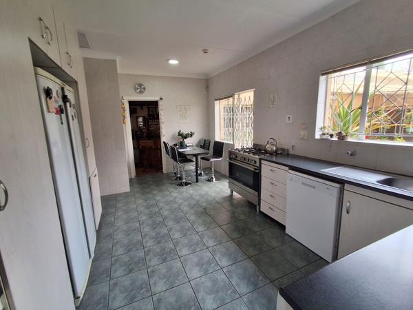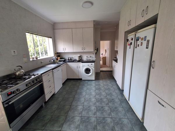 What a find.... Inviting family home set in a spectacular garden with full sprinkler system, offering a grand entrance, big open plan lounge, dining room and entertainment room with built in bar and sliding door to the garden. Cooks'' kitchen with loads of cupboards, gas stove, electric oven, plumbing for all your appliances and breakfast nook. Three double size bedrooms all with built in cupboards and 2 with walking-in cupboards, 2 lovely bathrooms, one being an ensuite, solar geyser, full solar system, prepaid electricity, alarm system and fiber.