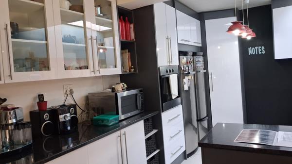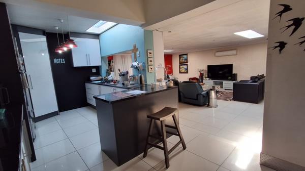 The home boasts 4 generously sized bedrooms with built-in cupboards, 3 bathrooms, and a guest toilet. The living space includes a welcoming lounge and a fully fitted kitchen, ideal for family living and entertaining.