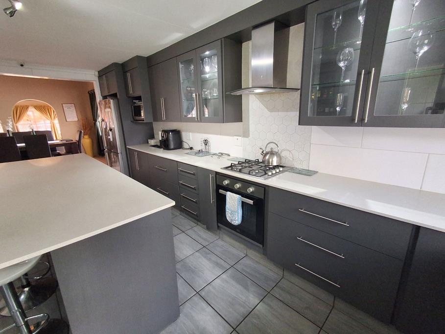 Garaging for four cars, additional paved parking space, helper''s quarters with a toilet and storeroom, lovely big garden, sparkling pool with a cover, thatch entertainment lapa with a built-in braai, great security including beams, alarm system, cameras and loads more. It''s a must to see and will definitely steal your heart...