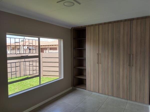 Located in a secure complex situated in a tranquil suburb with easy access to main traveling routs. Complex has automated gate at entrance. This cozy and neat home features a fitted kitchen 2 bedrooms with built-in cupboards, open plan lounge, dining and kitchen area, 2 bathrooms, double garage. Neat garden.