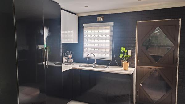 *Kitchen with built in cabinet, beautiful backsplash and fully tiled.