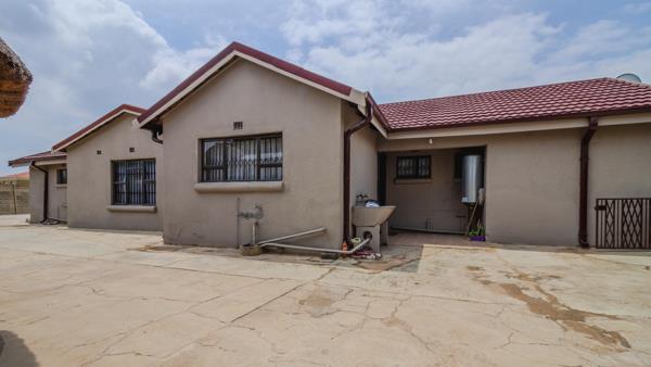 Double garage (fits 4 cars), secure parking for up to 18 vehicles, 3 outside rooms with shared facilities for rental or extended family, plus an extra storage room with shower and toilet. Two charming rondavels with a connecting patio add character. The property is fully walled with barbed wire for enhanced security.