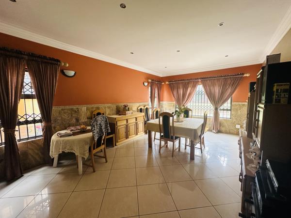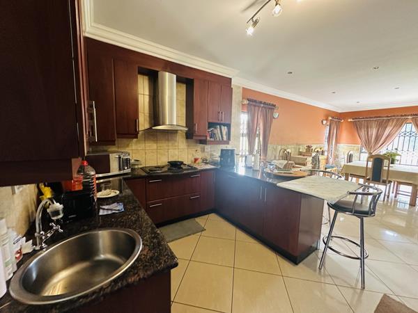 Designed for both relaxation and entertainment, the open-plan kitchen boasts granite countertops, a breakfast nook, and a scullery, seamlessly flowing into the dining area, family room, and lounge. A fifth bedroom with its own private bathroom is perfect for guests or extended family. Sliding doors open onto a covered patio with a built-in braai, leading to a large backyard, making this home an entertainers dream. A double-door garage with direct access adds convenience.
