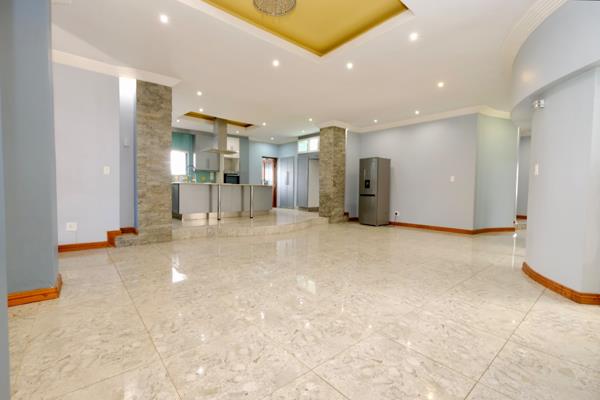 Upon entering, you''re welcomed into a spacious and light-filled TV room, perfect for cozy family movie nights. The open-plan living areas include a lounge and dining room, seamlessly flowing into a magnificent, modern kitchen with sleek finishes and ample counter space. The kitchen is complemented by a separate scullery, providing additional storage and convenience for busy households.