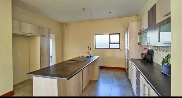 The ground floor features an en-suite guest bedroom, a formal lounge, and a cigar lounge perfect for private relaxation. The expansive open-plan living area includes a stylish TV lounge, family lounge, and a modern dining kitchen with a central island. A separate scullery and laundry offer practical elegance, while the lapa with built-in braai, large patio, and sparkling pool create the ultimate indoor-outdoor living experience.