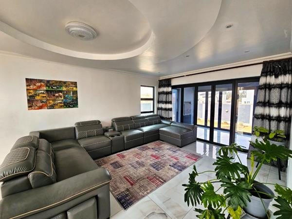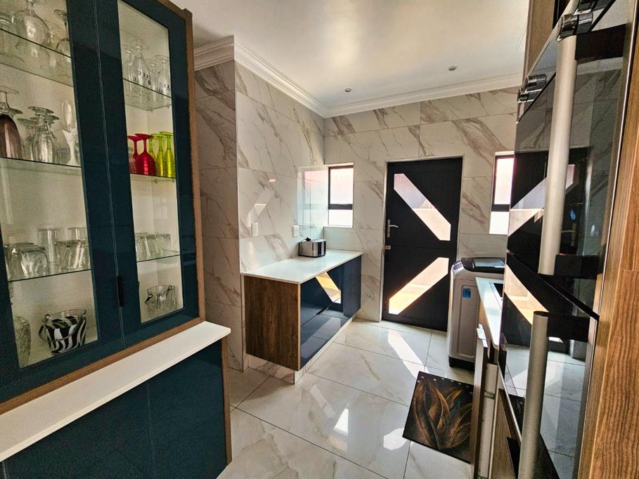 Step inside to a beautifully designed open-plan layout. The fully fitted, state-of-the-art kitchen is a chef''s delight, flowing seamlessly into the dining room and open-plan lounge. This area is an entertainer''s dream, with a patio that opens up to a sprawling lawn and a dedicated braai areaideal for hosting unforgettable gatherings.