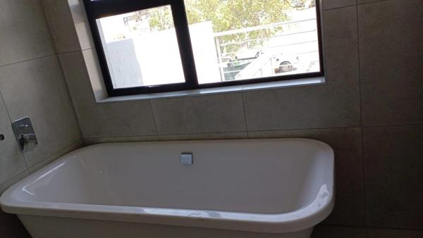 The heart of this home is the open-plan kitchen and lounge area. The kitchen is fitted with contemporary cabinetry, sleek countertops, and top-of-the-line appliances, ideal for both everyday cooking and entertaining. The lounge area is bright and airy, offering a seamless flow from the kitchen. Large windows allow natural light to flood the space, creating a warm and welcoming atmosphere.