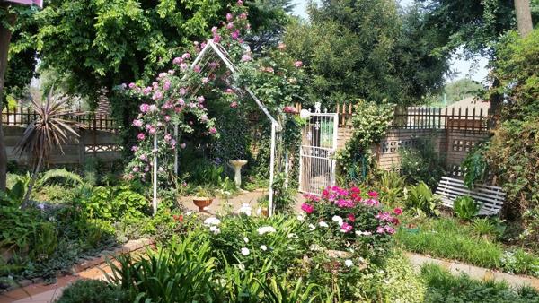 Back Garden: 7 raised veggie beds, fruit trees, and a storage unit.
