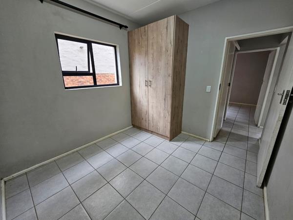 3 Bedroom 2 Bathroom (1 x en-suite) ground floor unit with open plan kitchen and lounge, Fibre ready, Induction Geyser, Gas Stove, Undercounter cupboards, Above counter cupboards, Scullery, 24 Hour security access controlled, Prepaid electricity, individual water meters, Jungle Gyms, Braai areas, 3 six a side fields, ample visitors parkings.