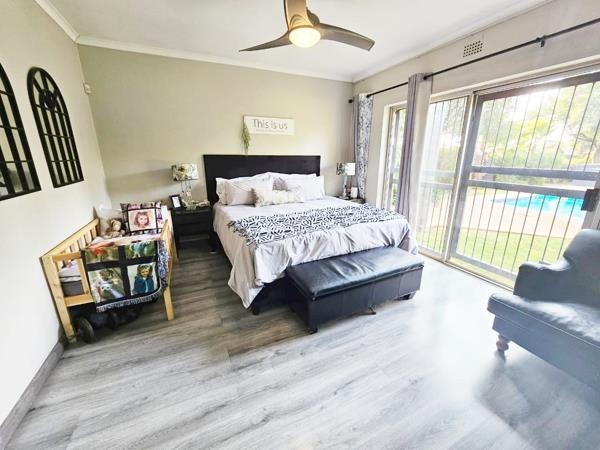 Sparkling heated pool and large back yard with loads of space for kids and pets to play with large inviting Boma area with Firepit and braai area.