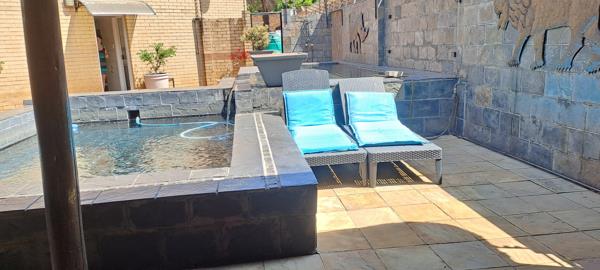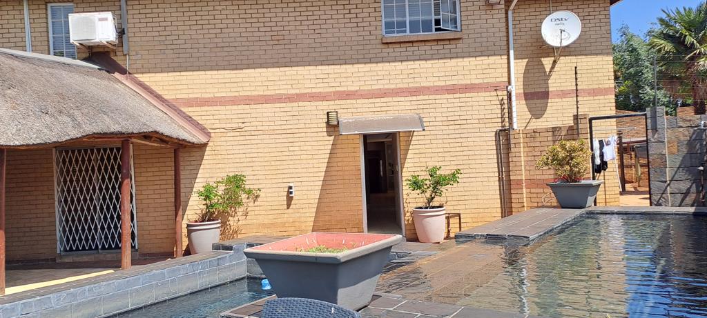 shine, being an open plan makes interaction with other people in the living/dining area easy, laundry room with plenty storage space. A separate formal lounge very spacious just as you enter the foyer/entrance hall gives you a welcome home feeling. You also have a home office/study. Three automated garages one of which is a drive through to the backyard. The outside is the well maintained paved yard and a landscaped garden with flourishing flowers all year round. An entertainment center under a thatched lapa fitted with a double gas speed braai, the double sparkling swimming pool, the outside toilet for convenience. At the front you get a great potch with a pond underneath to soothe and calm me time moments well deserved to enjoy your precious home with a holiday feeling. This property is located in a very tranquil sought after suburb in Kenleaf. Daily amenities such as private and public schools, freeways, shopping malls, casino, and many more are just nearby. So do yourself a favor, contact us to secure a private appointment for viewing. We await your call!! To assist you with the most important decision of your life future investment.