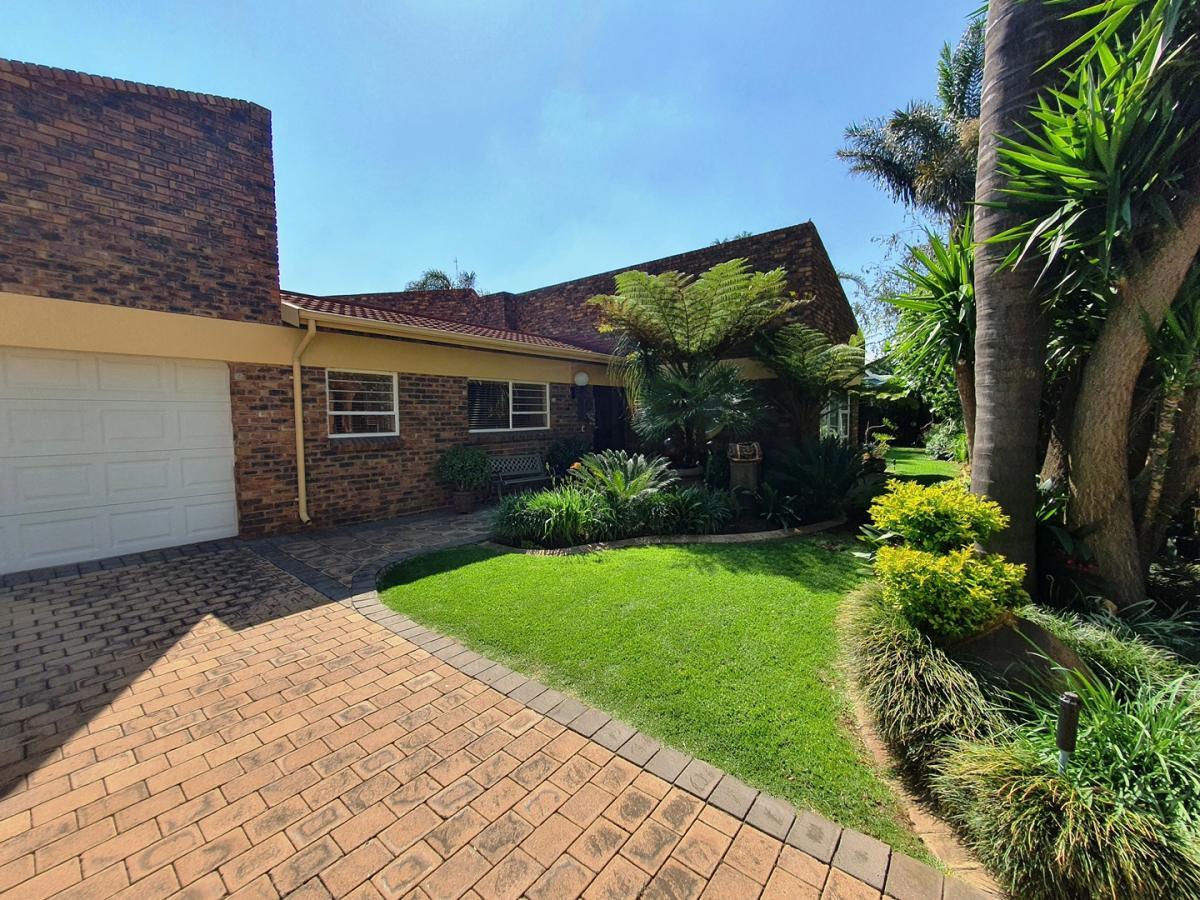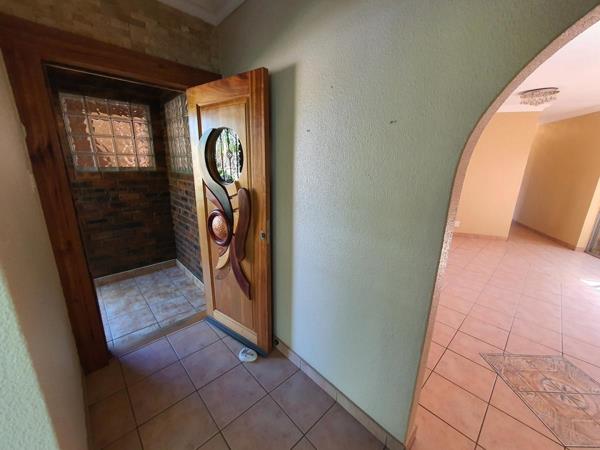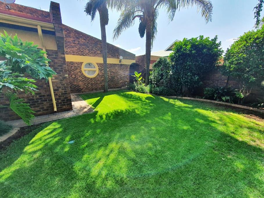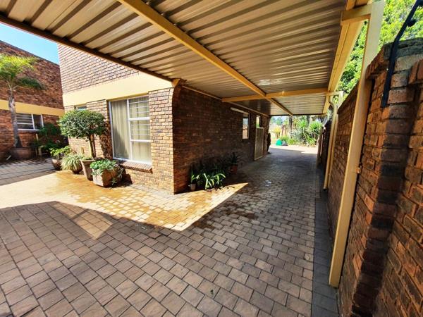 For entertainers, this home is a dream: enjoy an expansive entertainment room with a built-in bar, leading directly to the lapa with a built-in braai and ample space for hosting guests. The sparkling swimming pool and lush, landscaped garden with a sprinkler system complete the outdoor experience.