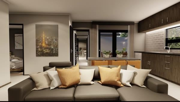 The open-plan design enhances the living experience, with a welcoming lounge that serves as the perfect place to unwind or entertain guests. Adjacent to the lounge is the dining room, a great space for family meals or hosting gatherings. The kitchen is thoughtfully designed, offering modern fixtures and ample storage to suit the culinary needs of its inhabitants.