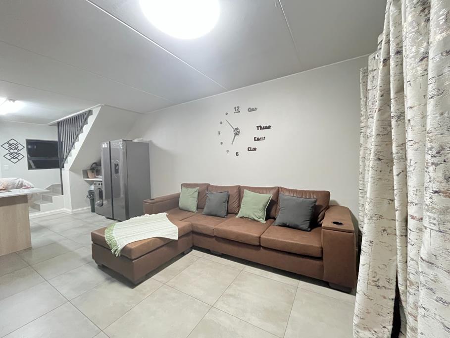 Open bedroom giving modern design tile, with solar geyser, remote access garage. This double storey apartment it includes 24 hour access control, CCTV cameras and conveniently situated close to schools, shopping malls, carnival city and main route.