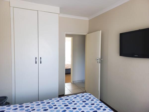 A well maintained second floor unit. This modern unit offers an open plan spacious kitchen with granite tops and sitting room with a sliding door leading outside to the balcony. It has three spacious built-in cupboards bedrooms and two fully tiled neat bathrooms. It is in a well secured complex with 24-hour security response. The complex is pet friendly and has a commune swimming pool. It offers a single covered parking.