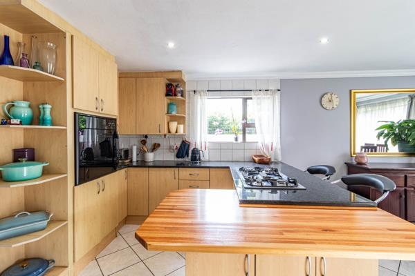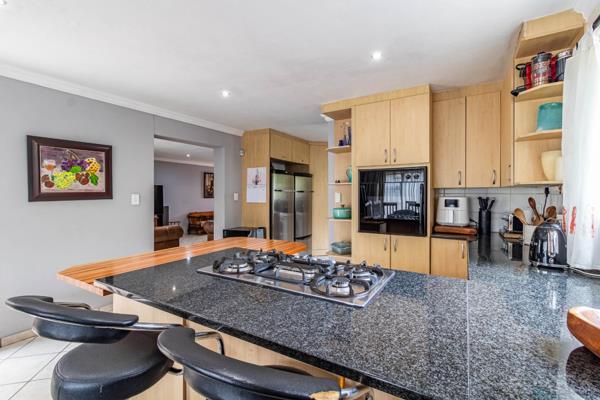 Downstairs - Open plan ultra-modern kitchen with breakfast nook, gas stove and electric oven, dining room, lounge, guest toilet, entertainment area with built in braai and sparkling splash pool.