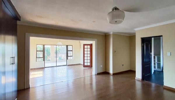 Outdoor living is catered for with a private swimming pool and a patio area, accessible via large sliding glass doors from one of the interior rooms. This space, along with a built-in braai area, offers excellent potential for entertaining and relaxation, once revitalised. The property is secured with a fence and burglar bars, ensuring peace of mind. With its generous dimensions and numerous rooms, this home is ideal for those looking to create their dream family haven.
