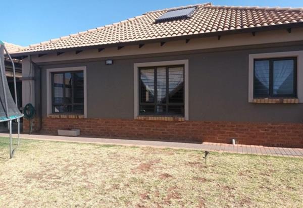 This home offers three comfy bedrooms, including one with a cool geometric accent wall, and two bathrooms, with one being an en-suite. The main bathroom features dual sinks and a large bathtub, while the second has a sleek glass-enclosed shower. Outside, you''ll love the covered patio with a built-in braai ideal for weekend get-togethers! Plus, a solar water heater means energy savings.