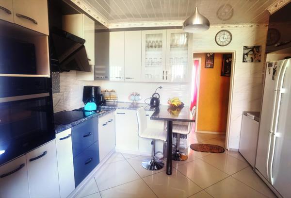 Welcome to this charming 3-bedroom, 2-bathroom facebrick house with a modern touch. As you enter, you are greeted by a spacious lounge and dining area, perfect for entertaining guests or cozy family gatherings. The kitchen features sleek gloss units, providing ample storage space and a contemporary aesthetic.