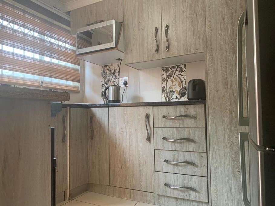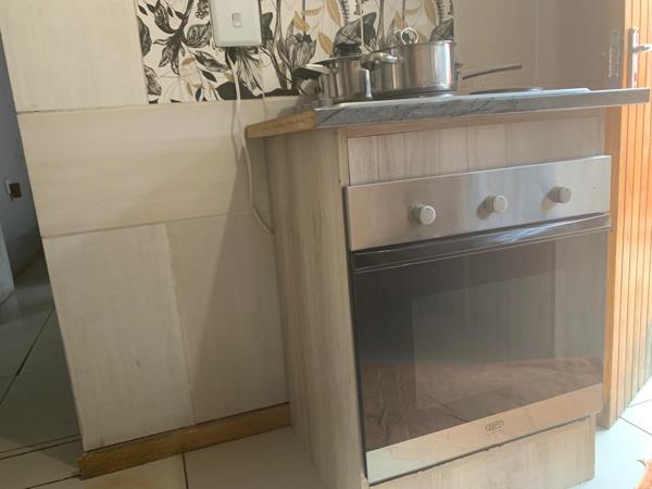 Kitchen with Electric Stove, BIC, Tiled, fitted roller blind and space to fit your Double door Fridge