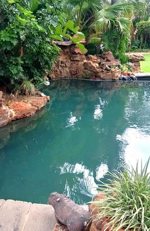 Lounge opening onto patio overlooking pool and stunning evergreen garden