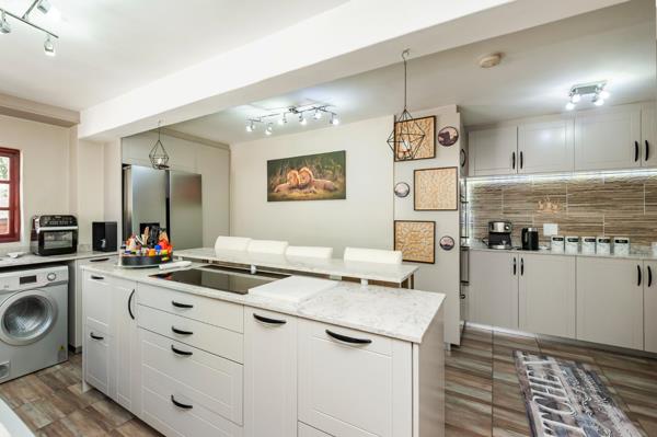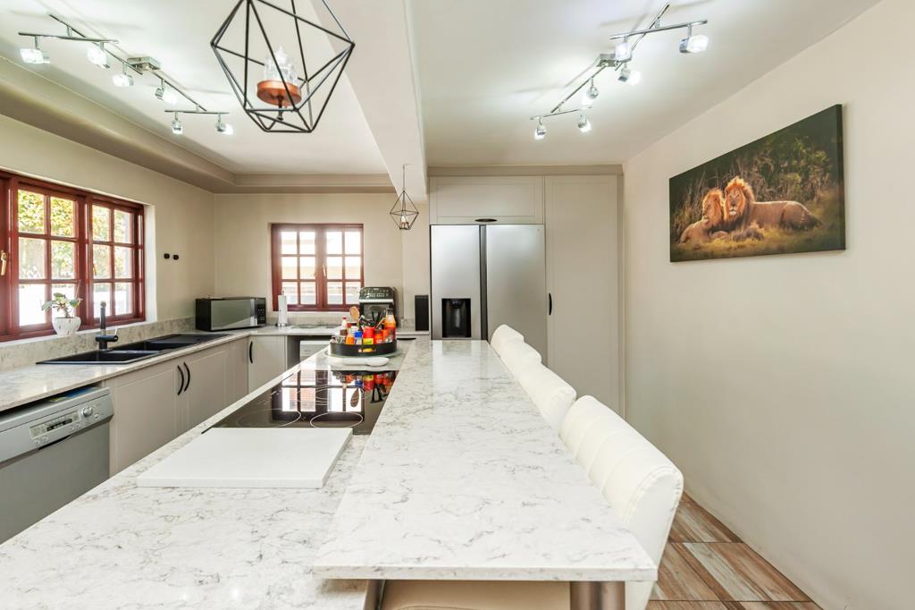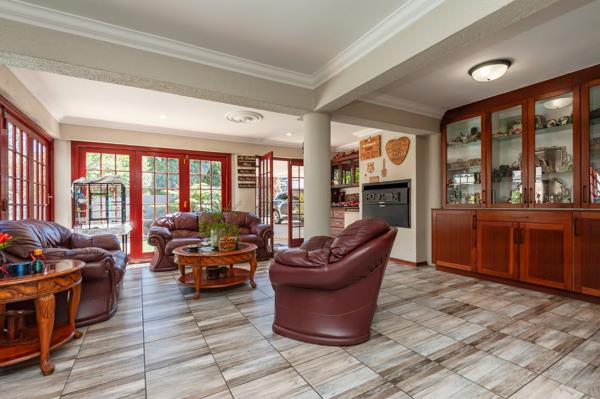Upon entering, you are greeted with a spacious playroom that seamlessly connects to an open-plan living area featuring a contemporary kitchen, dining space, and lounge centered around an inviting indoor braai, perfect for entertaining year-round. Upstairs, the home opens up to a stylish entertainment area, surrounded by a well-manicured garden, a sparkling pool, and a cozy firepit ideal for summer evenings or winter gatherings.