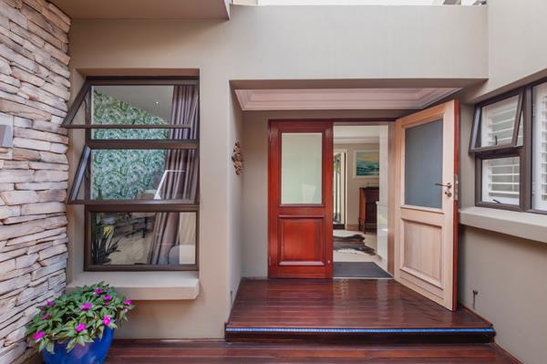 The entertainment area is a real highlight large, covered, and enclosed with elegant stacker doors, flowing out to a decked patio and solar-heated pool. The indigenous garden is lush and private, attracting lovely birdlife and creating a peaceful, natural setting to enjoy all year round.