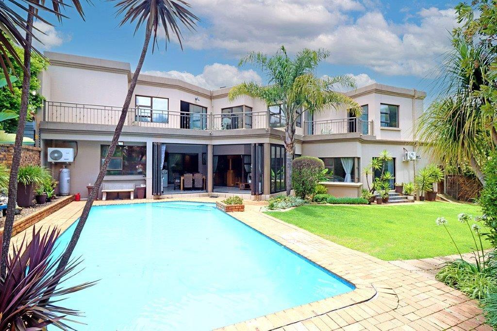 A second lounge leads to an expansive entertainmentliving room featuring a charming gas fireplace and a dedicated fitted bar area. All three living rooms seamlessly connect to a covered patioperfect for gatherings and celebrations. Aluminum stacking doors open out to a beautifully landscaped garden and a newly renovated sparkling swimming pool.