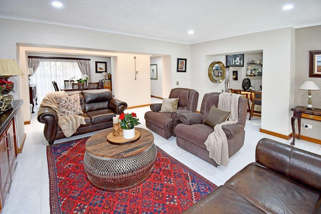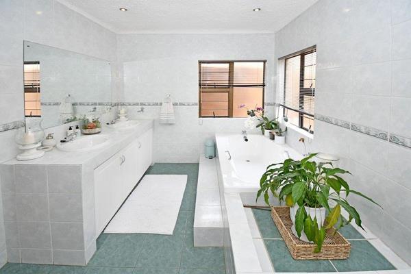 Indulge in a lifestyle of refinement and comfort within this meticulously crafted home, perfectly positioned in a vibrant and sought-after community and within a 24 hour security enclosure. While the photographs offer a glimpse of its beauty, a personal viewing truly reveals the exceptional quality and inviting atmosphere this residence provides. Upon entering, you are welcomed by a warm and inviting ambiance that flows seamlessly through the open-plan lounge and dining area. The space is enhanced by a built-in bar, air-conditioning, and elegant down-lighting throughout, creating a cozy yet sophisticated setting. A large skylight adjacent to the lounge floods the home with natural light, adding to its charm. The covered entertainment area is ideal for hosting, featuring a gas braai and aluminum stacking doors that open onto a beautifully manicured garden and sparkling heated swimming pool. A fire pit completes the outdoor space, perfect for relaxed evenings during cooler months. The home offers a guest bedroom with an en-suite bathroom, as well as a separate TV lounge to accommodate overflow guests from the main living area. The well-designed kitchen boasts ample cupboard space, a large pantry, a five-plate gas stove, eye-level oven, and extractor fan. A separate laundry and pantry area provide direct access to the garage as well as a private courtyard. All three bedrooms are privately positioned away from the main living areas and feature tasteful built-in cupboards and laminated wooden flooring. The main bedroom is a standout, offering a walk-in dressing room, en-suite bathroom with double vanity, and a newly installed air-conditioner. A second full bathroom services the remaining two bedrooms, complemented by a spacious linen cupboard. Additional features include two automated garages, a large awning carport accommodating two more vehicles a lots of off street parking, plus 5,000-litre JoJo water tank with pump, a 5kVA inverter with eight solar panels, and two geysers one solar-assisted. Stunning staff quarters or teenage padwork from home is a bonus. All fitted blinds are included as fixtures and aluminum doors and windows throughout. Ideally located with easy access to major highways, top-rated schools, shopping centers, and pet-friendly parks, this exceptional home offers a lifestyle of convenience, comfort, and sophistication within a thriving community.