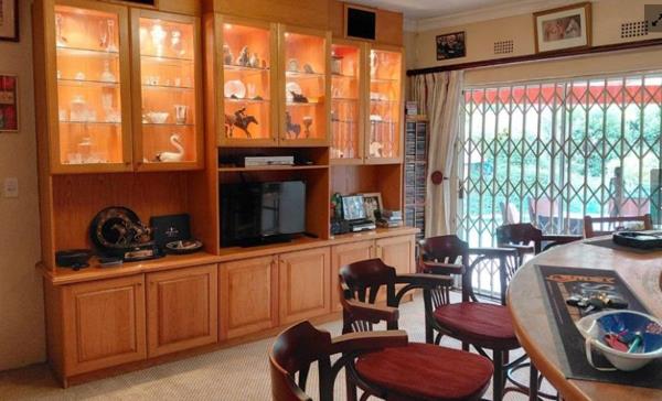 The established garden and solar-heated pool are complemented by a covered entertainment area with built-in gas braai, as well as an additional covered lapa positioned between the lounge and level garden.