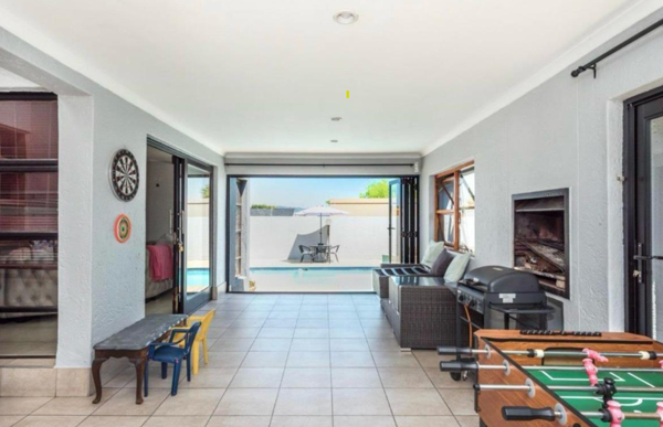 Entertainment Patio Covered and overlooking a sparkling blue pool, ideal for weekend braais and relaxed get-togethers.