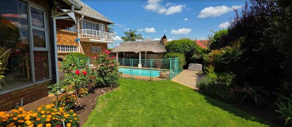 Sliding doors from the lounge and pub lead to a covered patio overlooking the established garden, solar-heated swimming pool, and multiple entertainment Lapas with built-in gas braai.