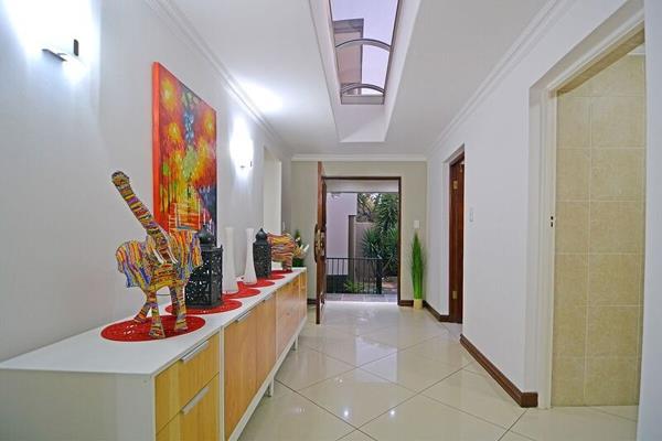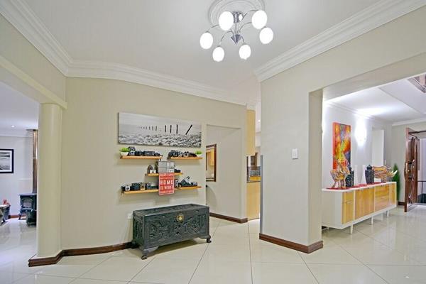 An expansive enclosed entertainment area with a built-in braai flows out to a beautifully manicured garden and a sun-drenched swimming pool the ideal setting for year-round hosting.