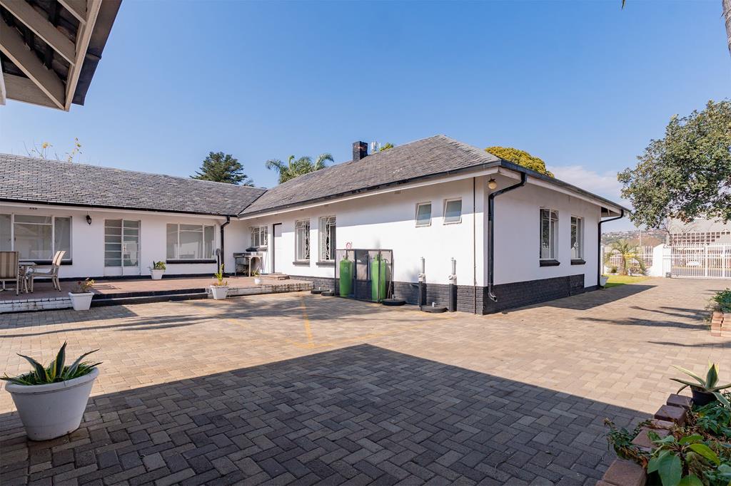 The home is built under a solid slate roof with modern updates including aluminum windows and a combination of tiled interiors and manicured outdoor spaces. Set behind a wrought iron palisade fence and accessed via an electric gate, the property offers ample secure parking for guests, patients, or staff. The well-maintained garden creates a serene and inviting environment ideal for both short stays and longer-term care.