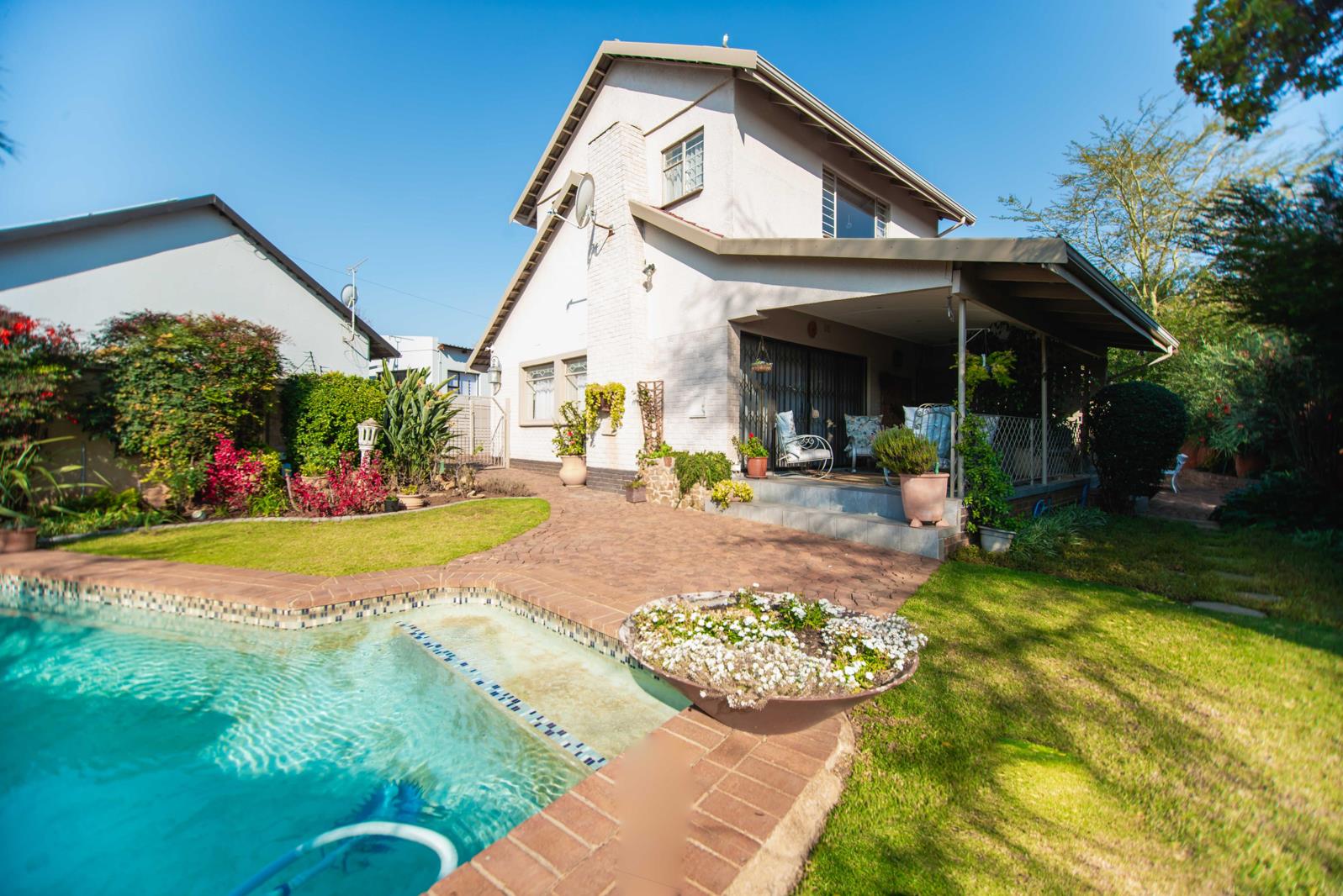 Outside, a separate cottage area has been transformed into a home office, offering a quiet and productive workspace away from the main living areas.