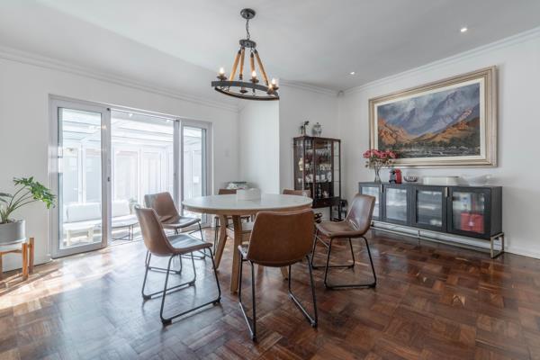 Featuring classic parquet flooring and a seamless open-plan layout, the home boasts a stylish kitchen that flows into the dining and lounge areas. Ideal for modern family living and entertaining. A spacious, enclosed patio opens out to a sparkling pool, creating the perfect indoor-outdoor space for year-round enjoyment.