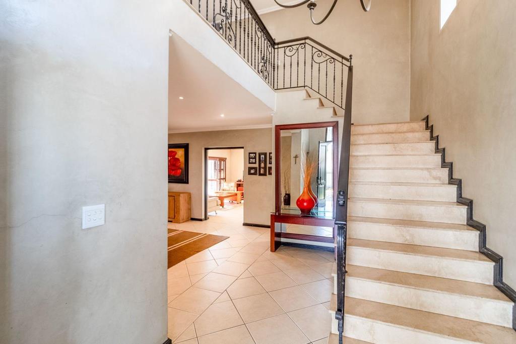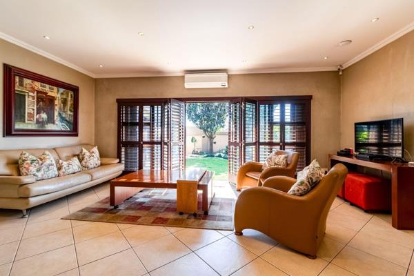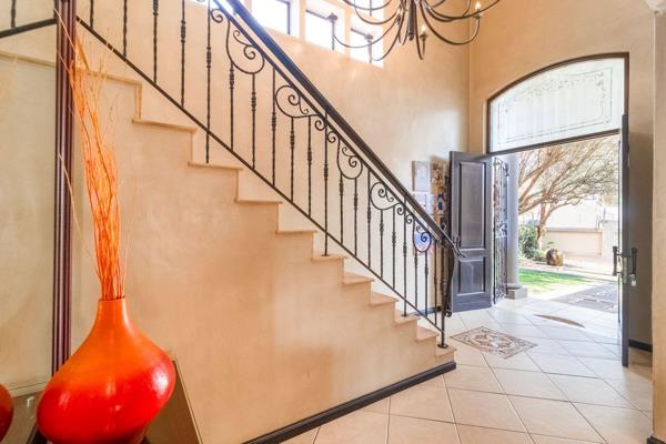 Perfect for year-round entertaining, the covered braai patio overlooks a sparkling, solar-heated pool, framed by a low-maintenance garden. A dedicated wine cellar adds character and charm, ideal for storing and displaying your collection. With a comprehensive solar power system, battery backup, and generator, the home offers seamless energy efficiency. Four automated garages ensure secure parking, complemented by ample visitor space.