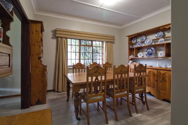 A beautiful, lush, and well-maintained garden welcomes you to this fabulous home. The inviting entrance leads into a spacious, bright, north-facing main lounge featuring a stunning wood-burning fireplace, perfect for cosy winter evenings. Adjoining the lounge is an elegant dining room, ideal for intimate dinner parties. Also available is a private built in study, perfect for a work from home space