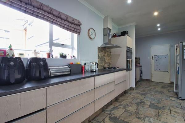 Step into this inviting home where spacious open-plan living areas create an immediate sense of comfort. The semi-open-plan kitchen is a standout feature, offering ample cupboard space and excellent functionality. It is equipped with a double eye-level electric oven, a 4-plate gas hob, and under-counter space for both a dishwasher and washing machine. A generous work counter doubles as a breakfast bar and opens seamlessly onto the dining area.