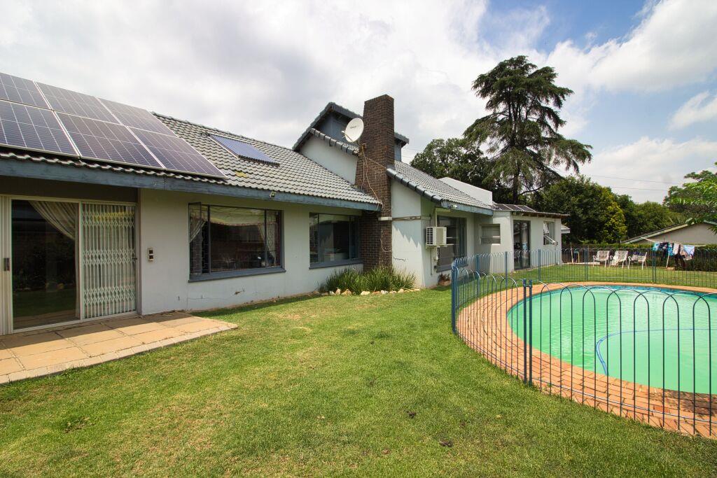 The property is designed for efficient, modern living and is equipped with 12 solar panels and three gas geysers, servicing the main house, the flat and the staff accommodation respectively.
