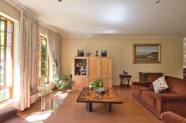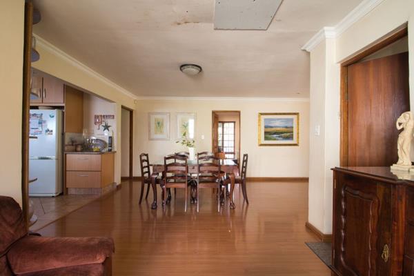 A standout feature of this property is the fully self-contained two-bedroom cottage. Both bedrooms are en-suite, sunny and spacious, with doors opening onto the garden. The open-plan living area with lofty ceilings incorporates a kitchen, dining and lounge area, creating a light and airy feel. The cottage is serviced by a gas geyser ideal for extended family, rental income, or a work-from-home setup.