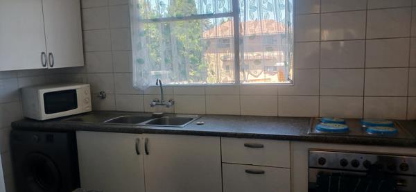 It offers a spacious lounge and dining area, with a well-equipped kitchen featuring built-in cupboards, granite tops, hob, and oven.